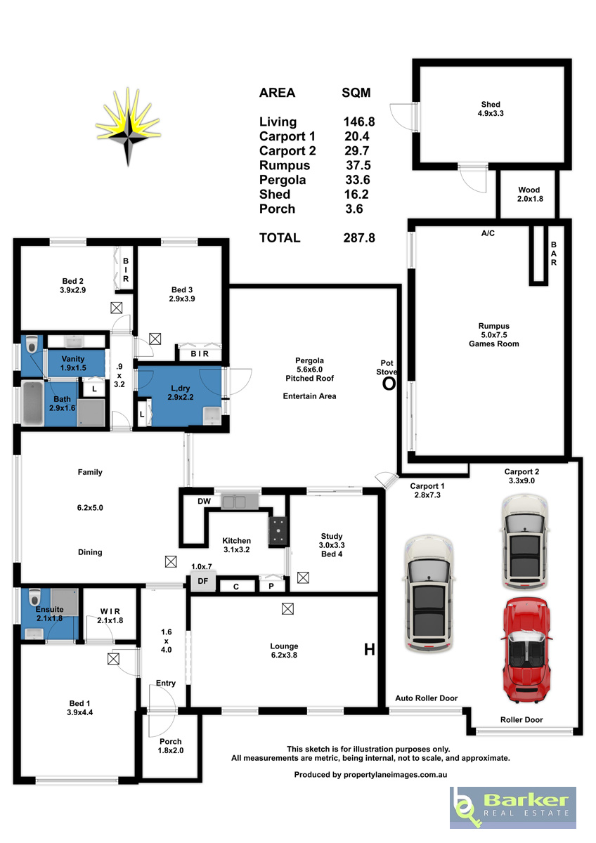 – Double carport (can fit 3 cars) (one automatic roller door, one manual)
