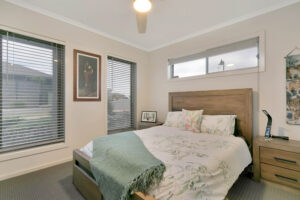 – Living and meals area with floating floorboards, plantation shutters, split system heating and cooling, ceiling fan and sliding door access to the rear of the property