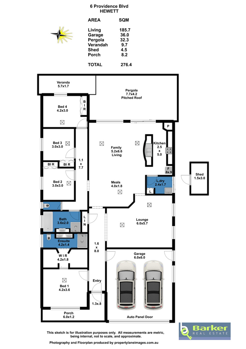 • Large 7.7×4.2m (approx) pitched roof paved pergola area and a 5.7×1.7m (approx) veranda off bedroom four