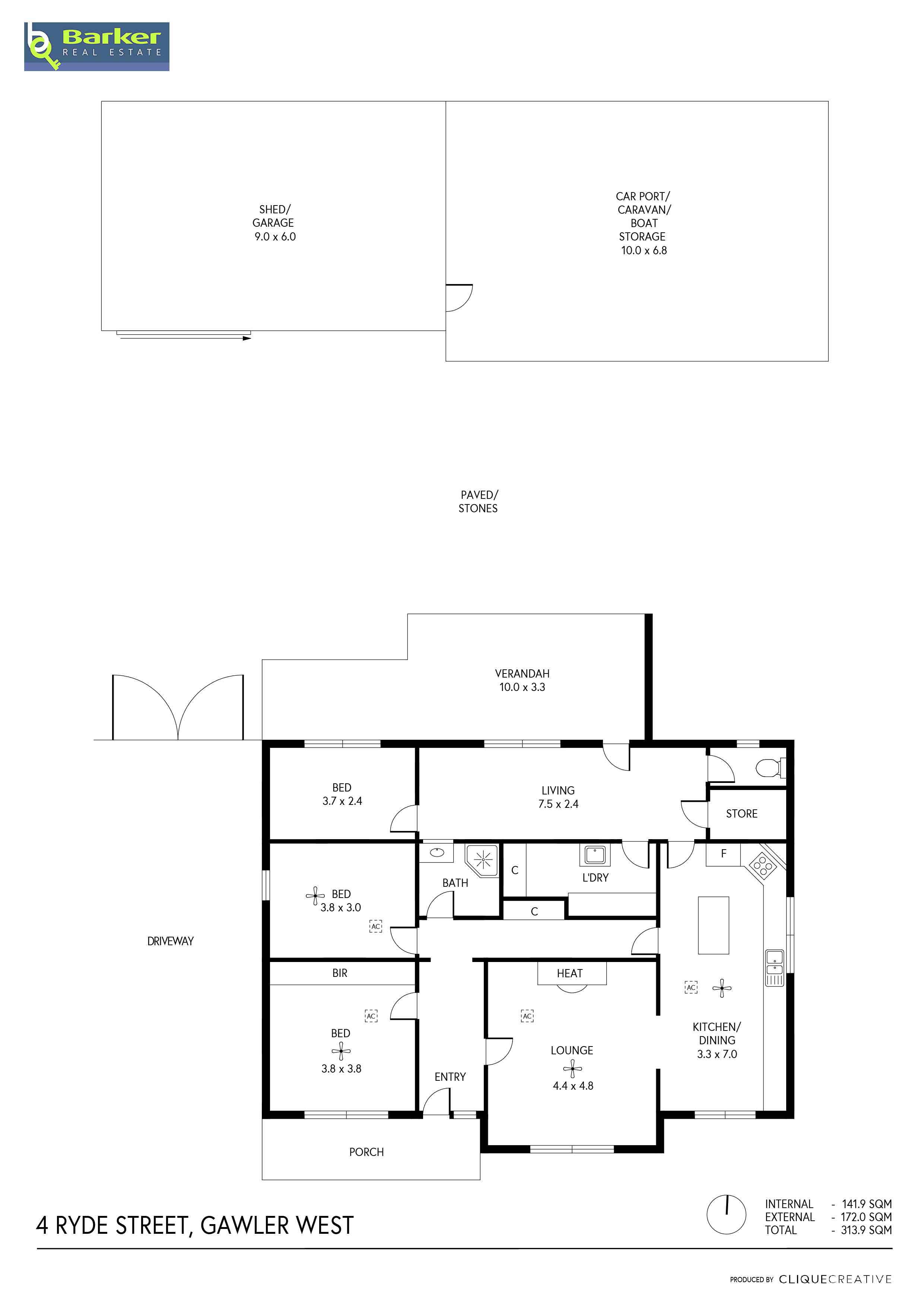 – Carport with a flat Colorbond roof fits 3 cars comfortably.