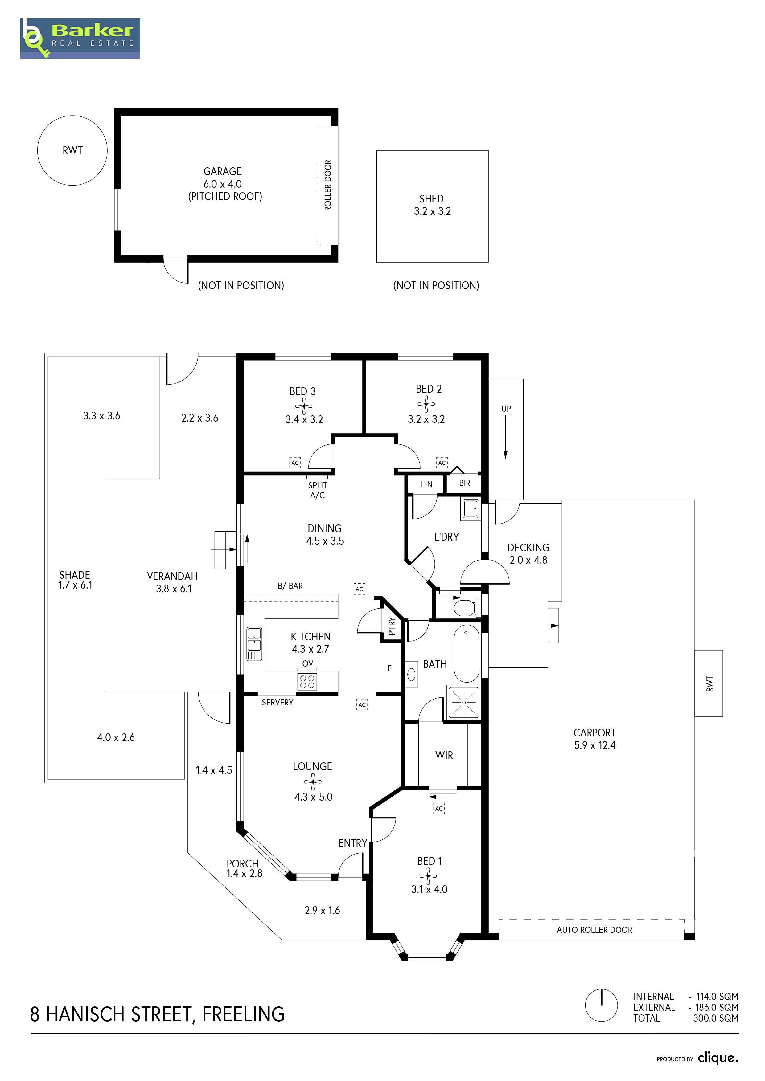 – Large shed with manual roller door plus side door access.