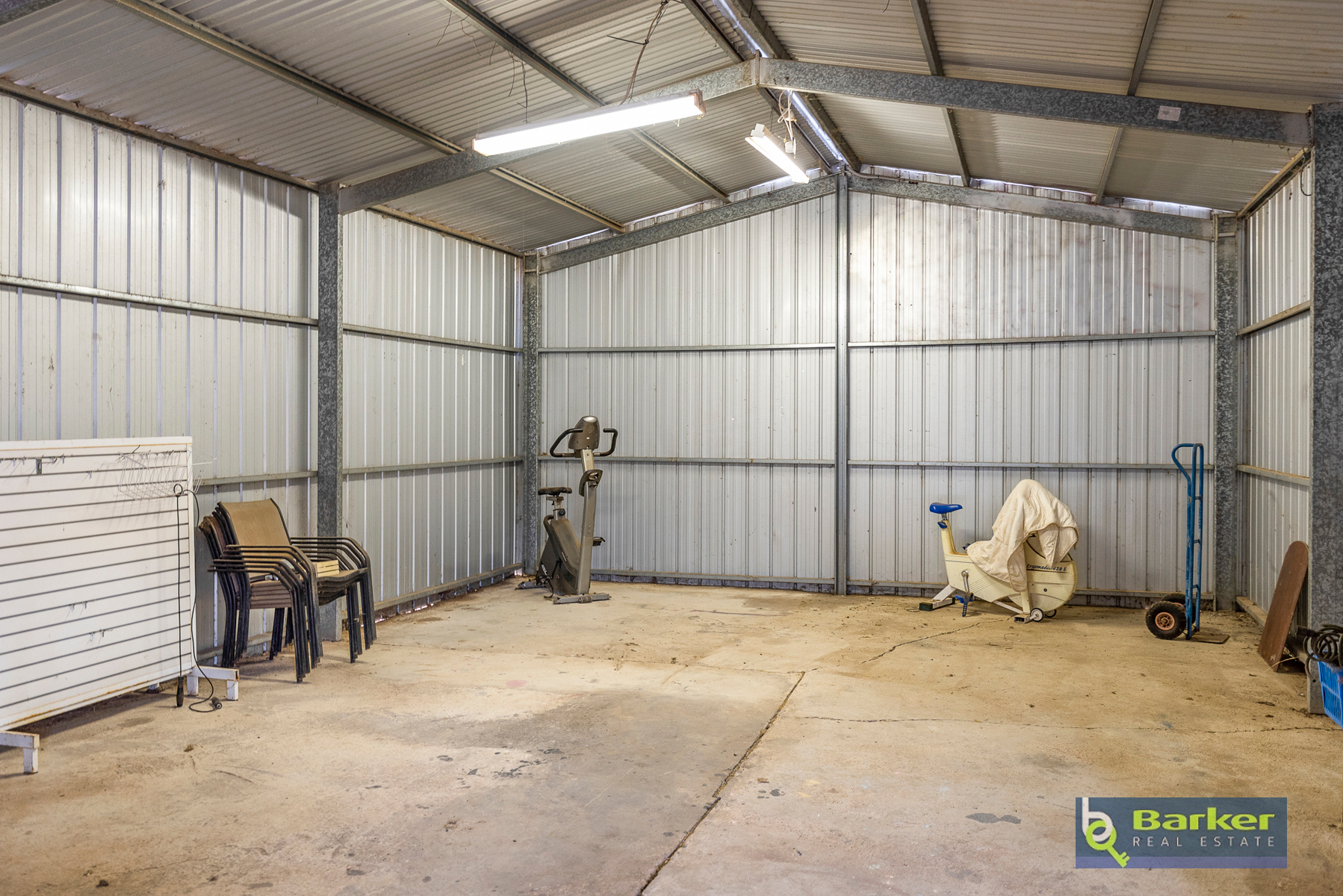 • Drive through access to a pitched roof shed approx. 6x12m with power