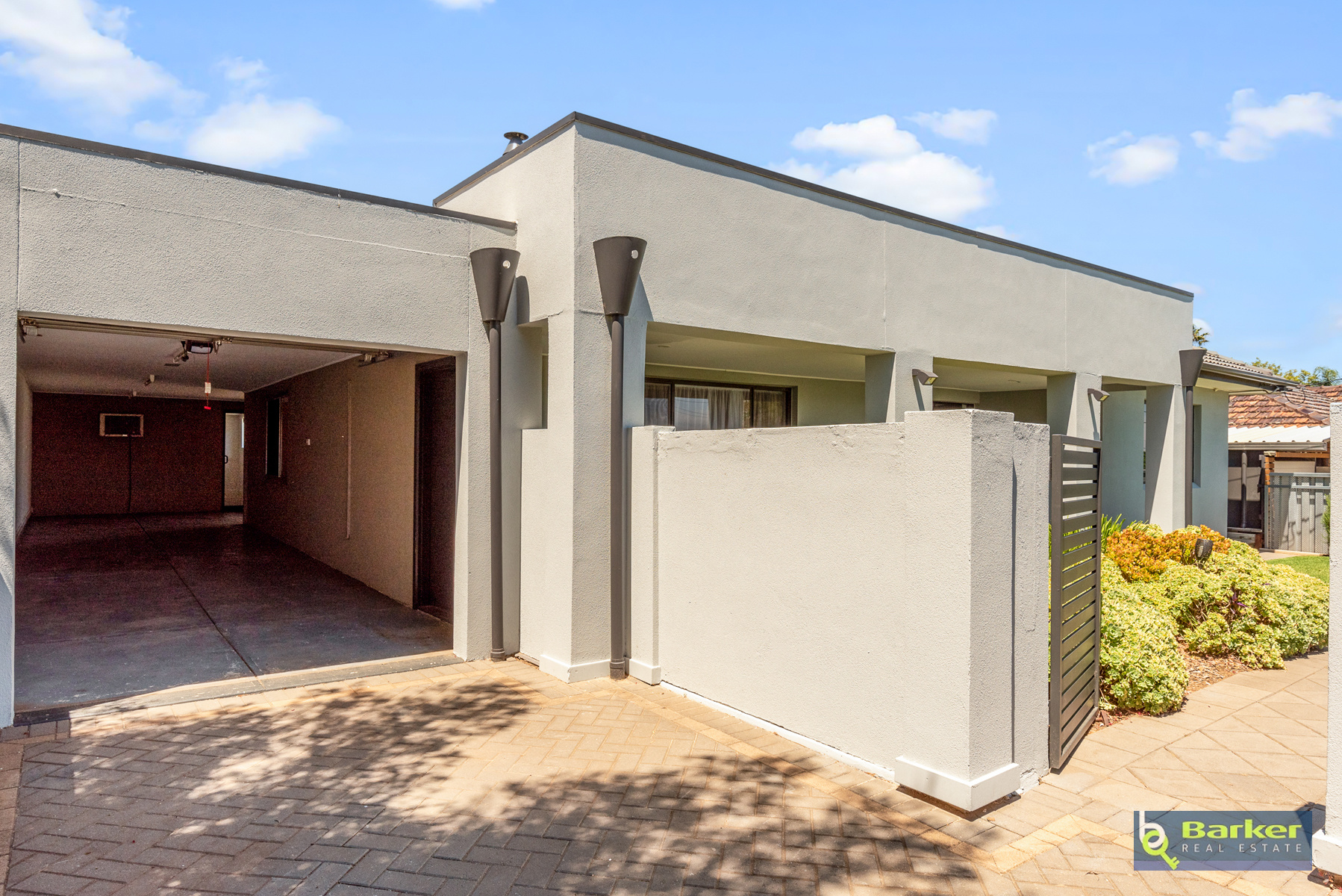 – Single roller door carport with room for three cars (length way)