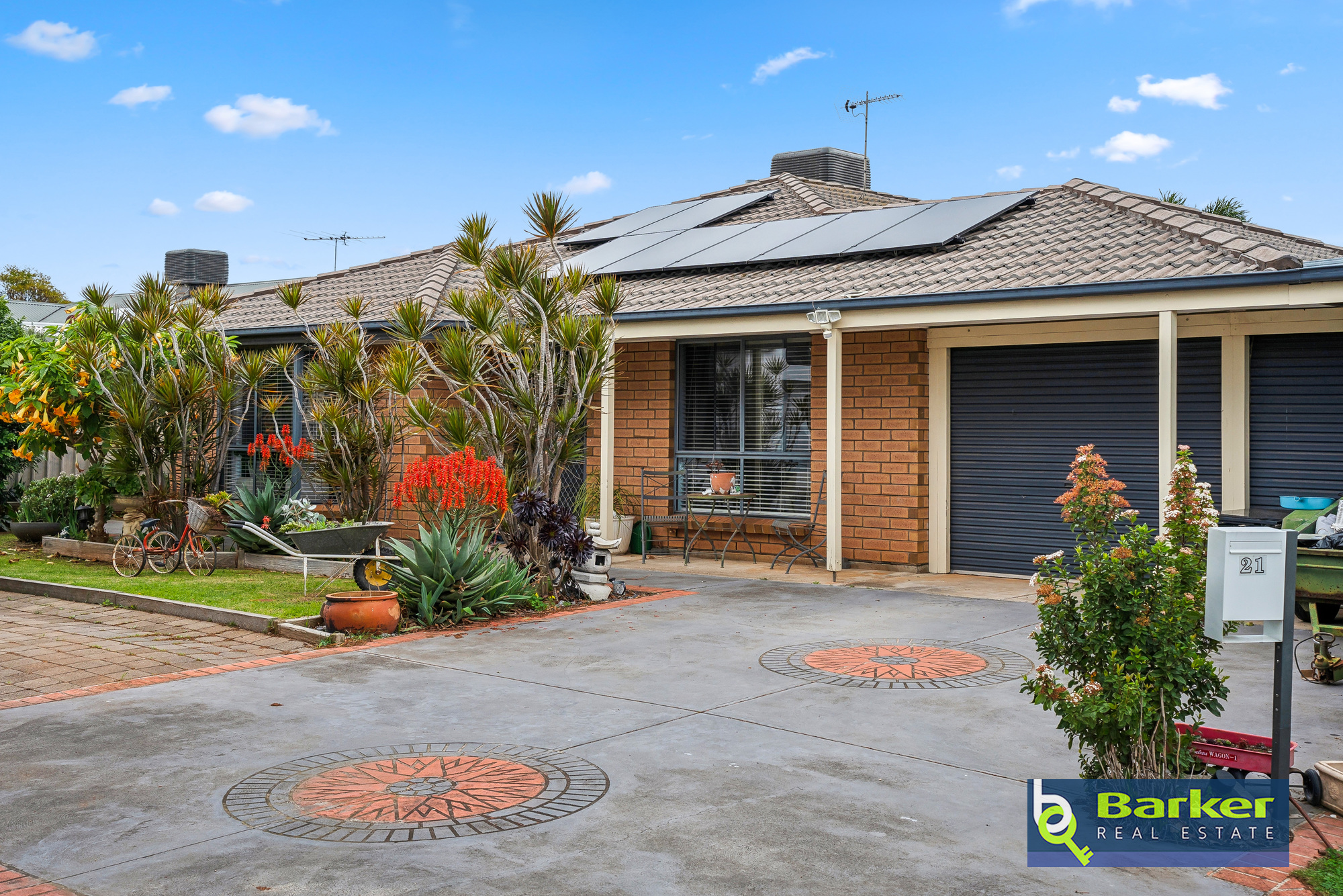 – Neat established front yard with lawn, paving, and garden beds.