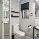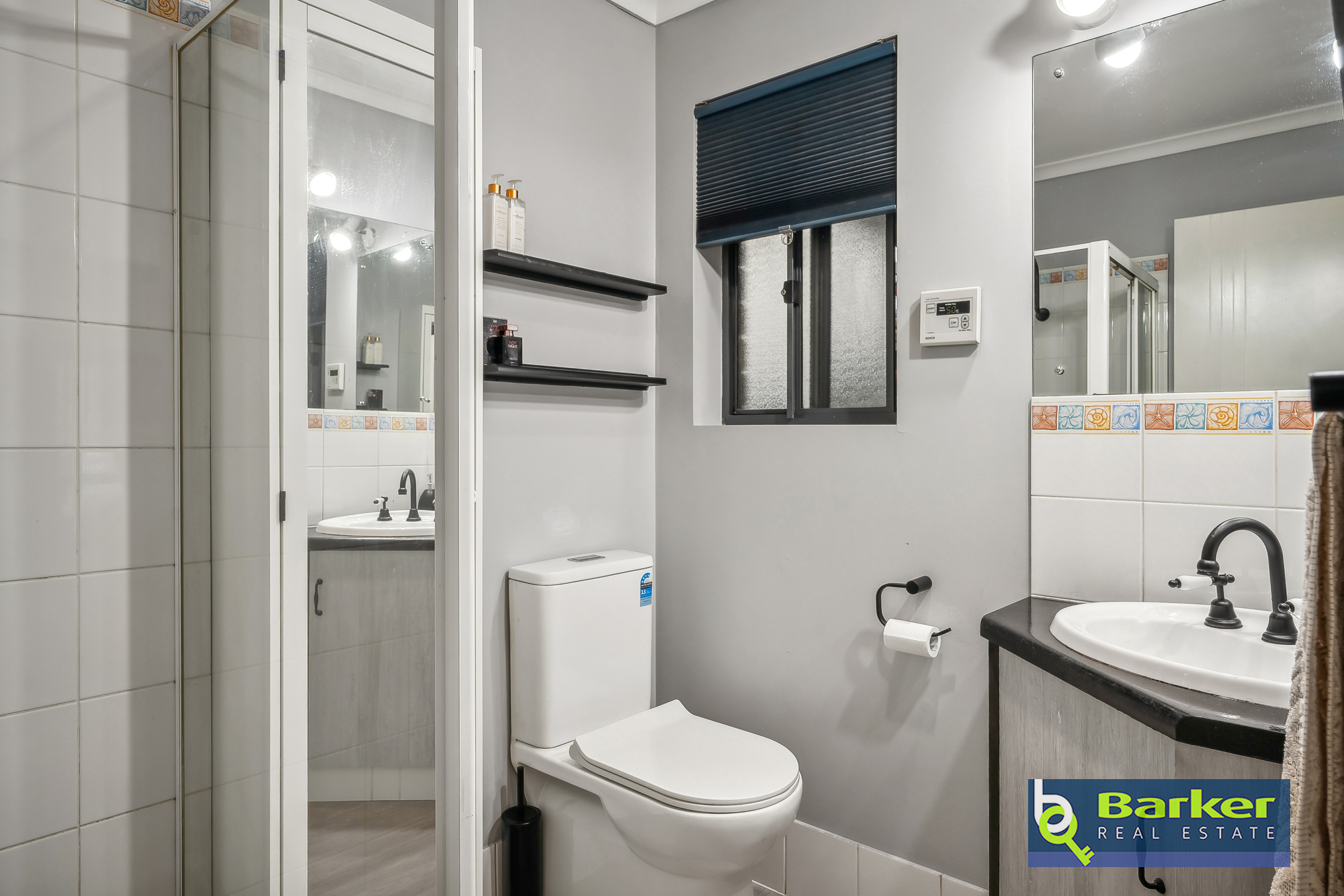 – Ensuite features modern black hardware on the taps.