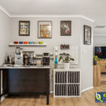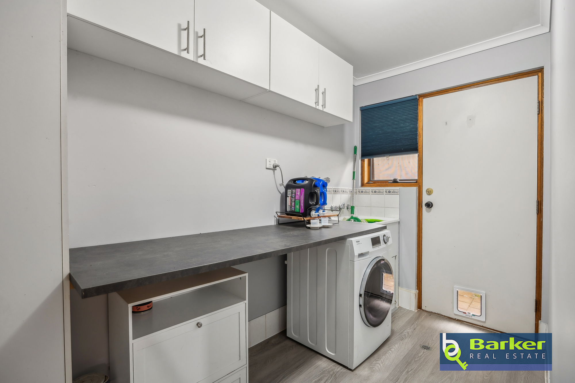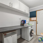 – Functional laundry with built in shelf, linen cupboard, and overhead storage.