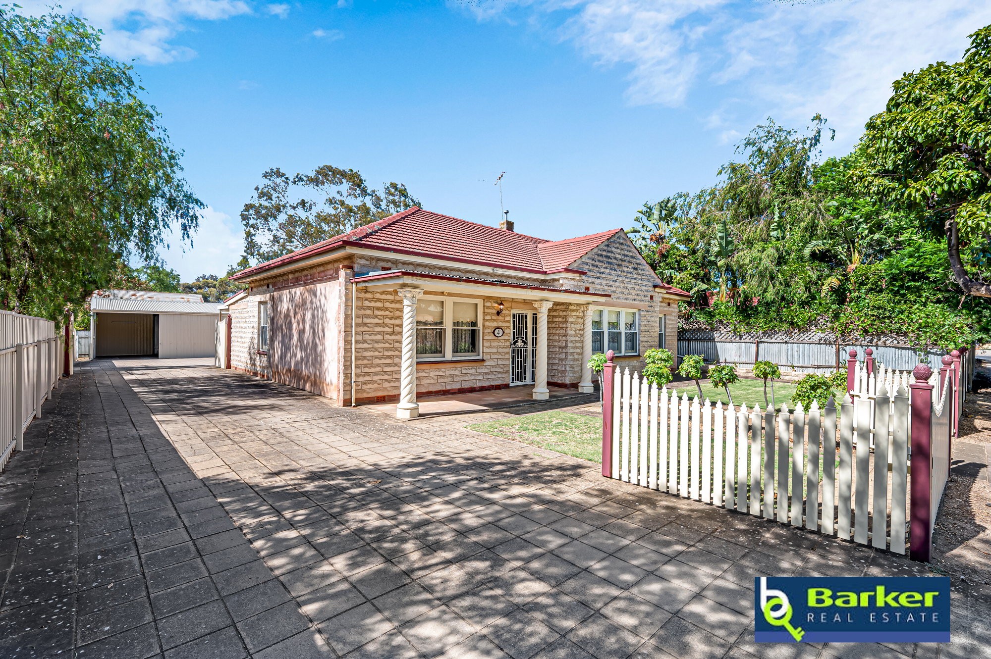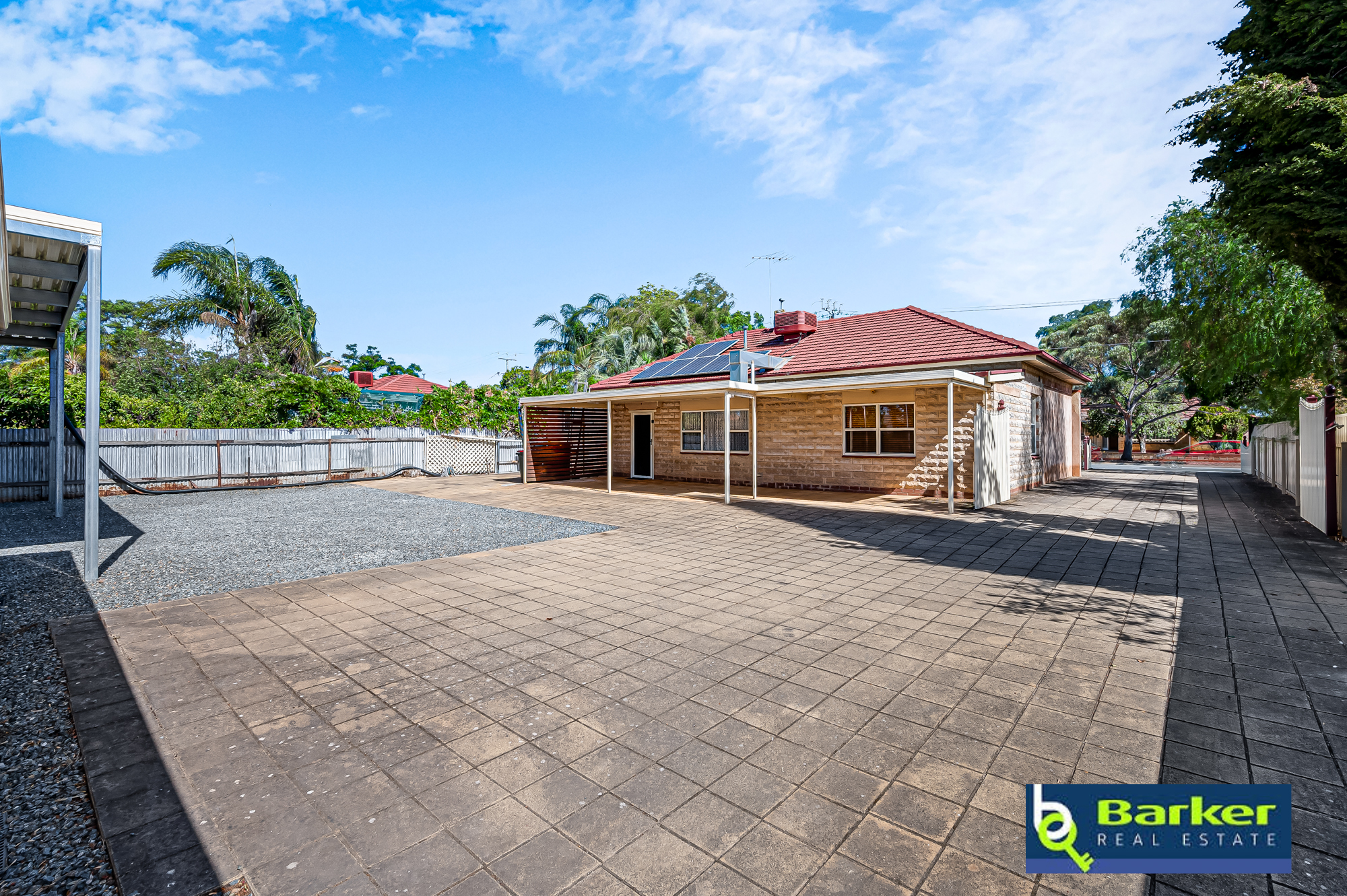 – Verandah provides a spot for entertaining, with flat Colorbond roof, pavers & slat screening to one side.