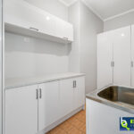 – Laundry has been tastefully updated with ample storage, linen cupboard, bench space and stand-alone trough.