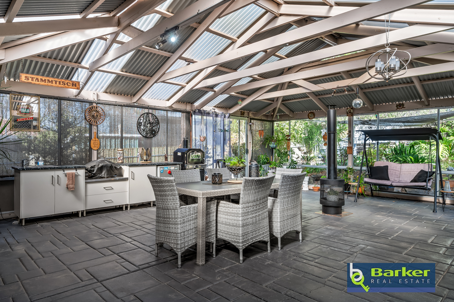 – Large, enclosed veranda area, perfect for outdoor entertaining. (outdoor kitchen & fridge included). Additional fire in the outdoor area included.