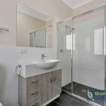 – Large master bedroom at the rear of the home featuring an ensuite, built in robe, walk-in robe, and sliding door access to outside.